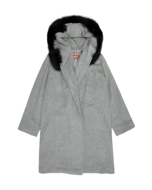 Coat With Hood Made Of Wool And Cashmere - Grey