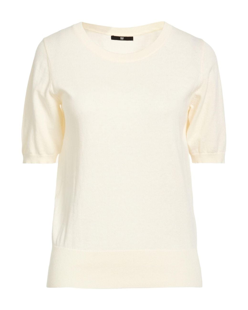 MAX & MOI. knitted, lightweight knit, no appliqués, plain colour, crewneck, short sleeves, hand wash or dry clean, do not bleach, do not tumble dry, power dressing meets elegance in this chic office outfit that will inspire confidence every day. 95% Cotton, 5% Cashmere. Colour: natural