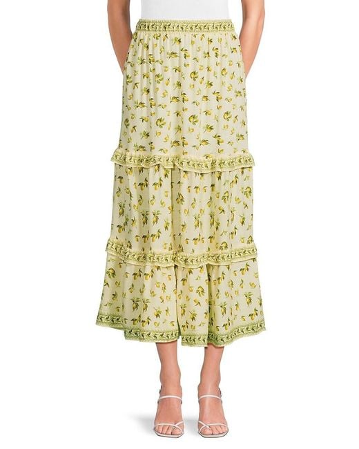 Women's Yellow Lemon-Print Tiered Midi-Skirt