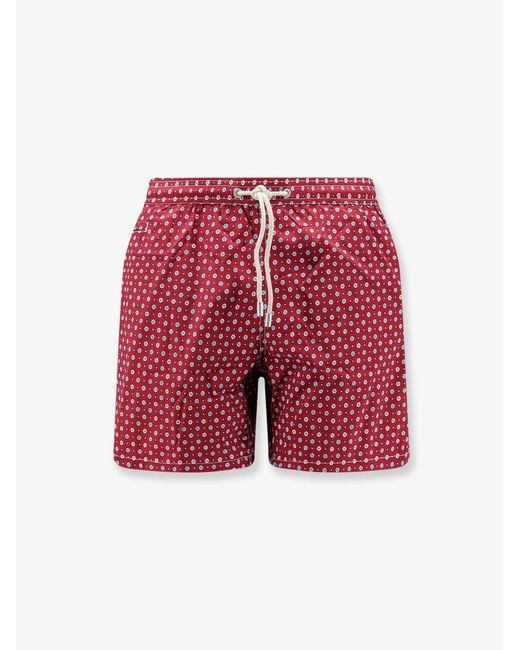 Men's Red Nylon Swim Shorts With All-Over Micro Pattern