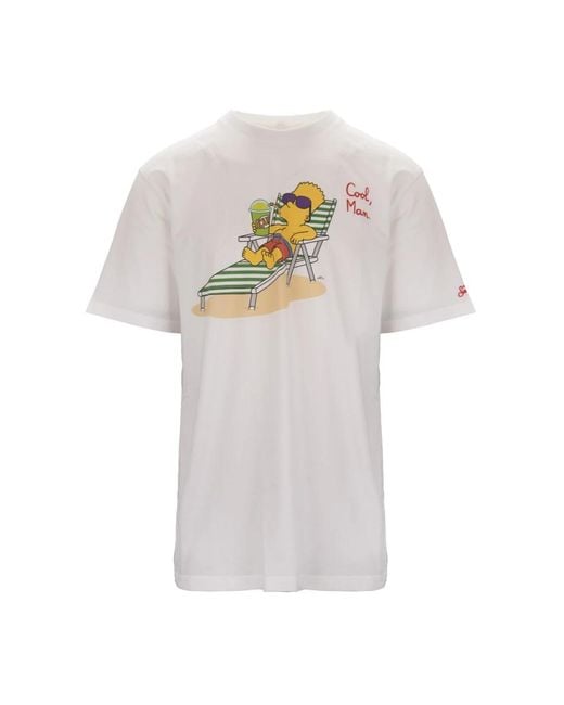 MC2 Saint Barth presents the T-Shirt, a crew-neck tee featuring a bold 'The Simpsons' graphic and contrasting embroidered lettering for a standout casual look. Key attributes: White | Bianco | Cotton | Crew neck | Short sleeves | Contrasting embroidered brand lettering on cuff | Contrasting embroidered brand lettering on side chest | 'The Simpsons' graphic print on front | Logo patch sewn into collar on back | Dimensions & fit: Shoulder (cm): 52 (Xxl), 54 (3Xl) | Chest (cm): 60 (Xxl), 62 (3Xl) | Length (cm): 78 (Xxl), 79 (3Xl) | Shoulder (cm): 49 (Xxl), 51 (3Xl) | Composition & care: 100% cotton | Machine wash cold, gentle cycle; do not bleach; tumble dry low or hang to dry; cool iron if needed. Colour: white
