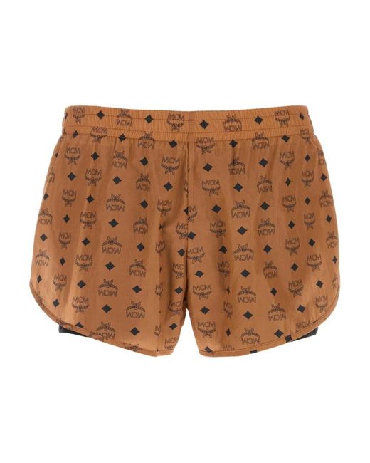 Elevate your casual style with these MCM printed nylon shorts for men. Colour: brown