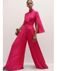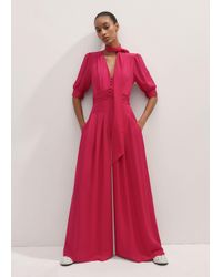ME+EM Women's Red Draped Wide-Leg Silk Jumpsuit