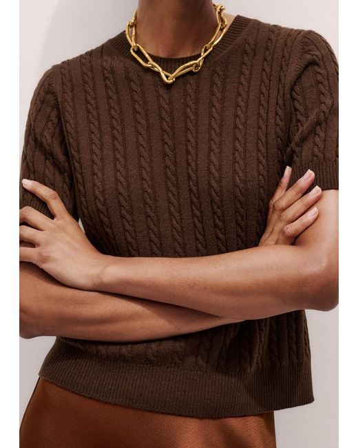 Women's Brown Merino Cashmere Micro Cable Knit Tee