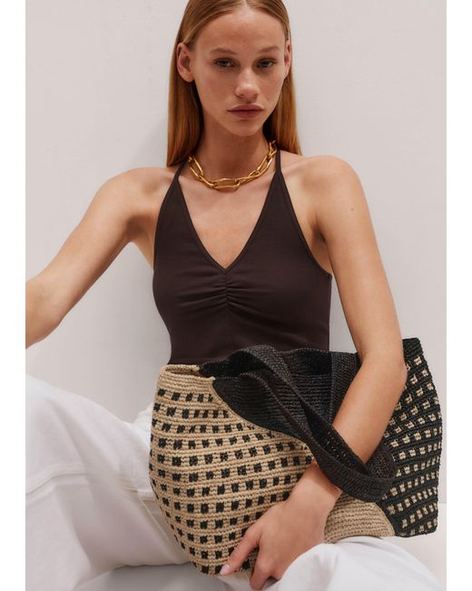 ME+EM's Brown Ultimate Halterneck Vest instantly adds interest to outfits thanks to the gathered V-neckline and sporty racerback. Shop now. ME+EM Ultimate Halterneck Vest Summer Chocolate - Women's - Cotton Rib Stretch Jersey - Size UK 16 Colour: black