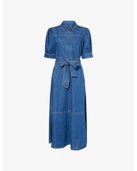 Go to ME+EMME+EM's Blue Washed Denim Midi Dress is elevated with a gold-toned zip fastening and contrasting stitch detailing, adding structure to the A-line silhouette. Shop now. Colour: blue