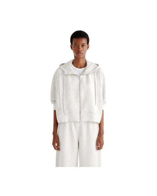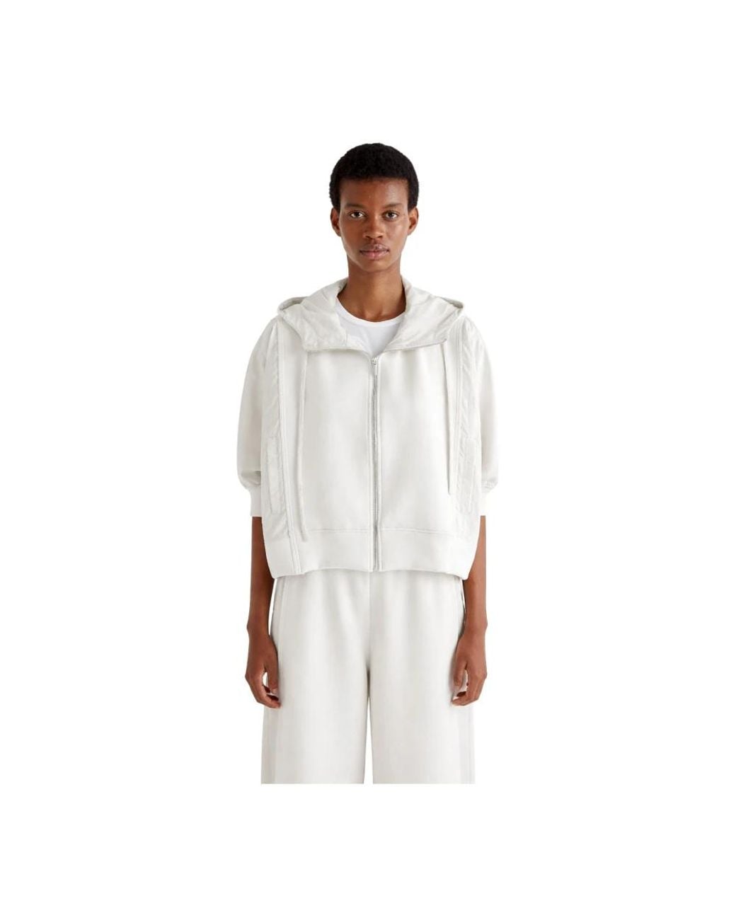 Mei Mei J Combined Sweatshirt Jacket blends a short-sleeve sweatshirt silhouette with a hood and zip-front for easy layering and casual wear. Key attributes: White | Bianco | Polyester | Hood with drawstring | Front metal zip opening | Combined sweatshirt-style | Short sleeves | Composition & care: Polyester Colour: white