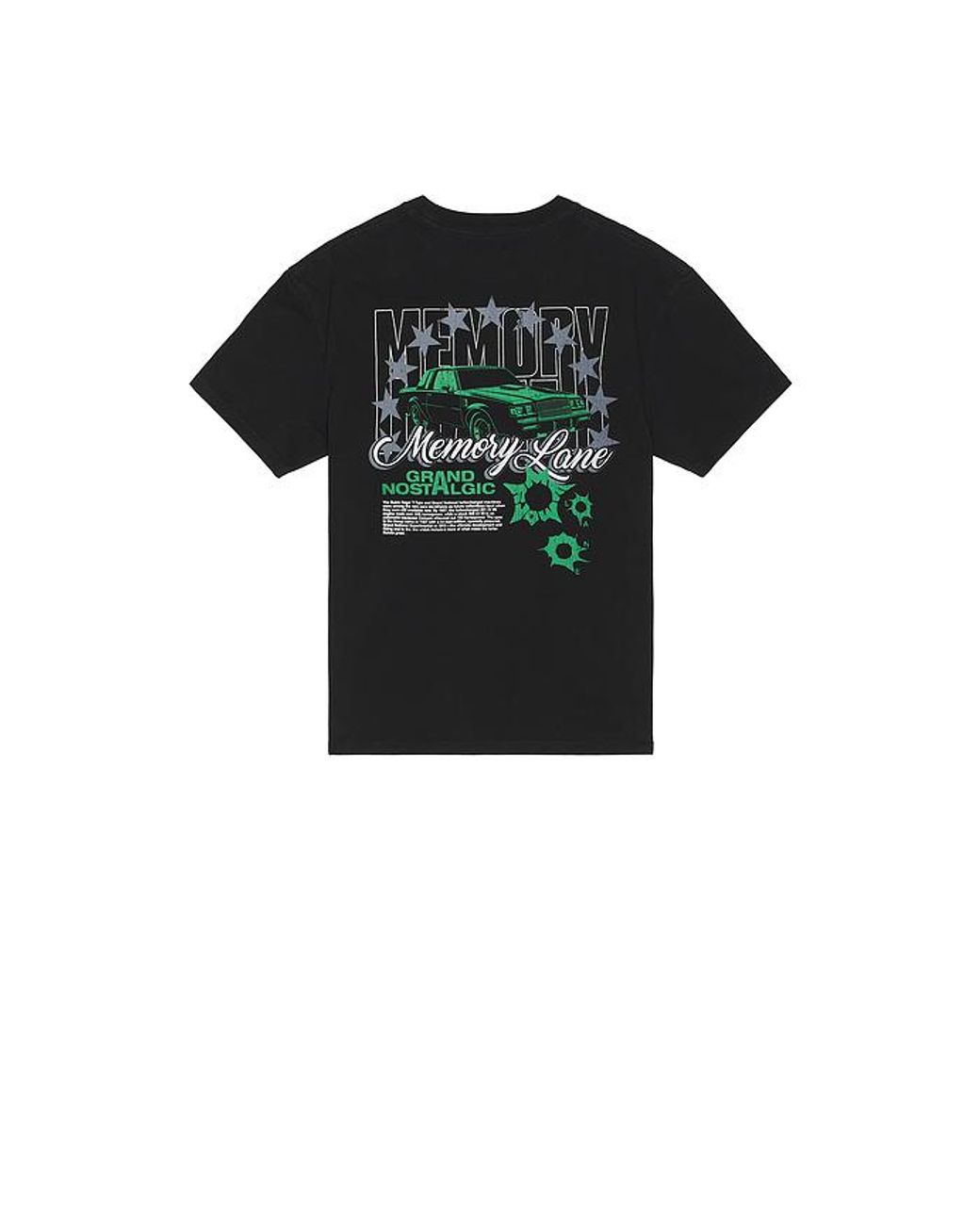 Memory Lane Grand Nostalgic Tee in Black. Size L. Also in M, XL/1X. Memory Lane Grand Nostalgic Tee in Black. Size M, XL/1X. 100% cotton. Machine wash. Front and back graphic. Midweight jersey fabric. MRYR-MS5. ML-SU25-117.