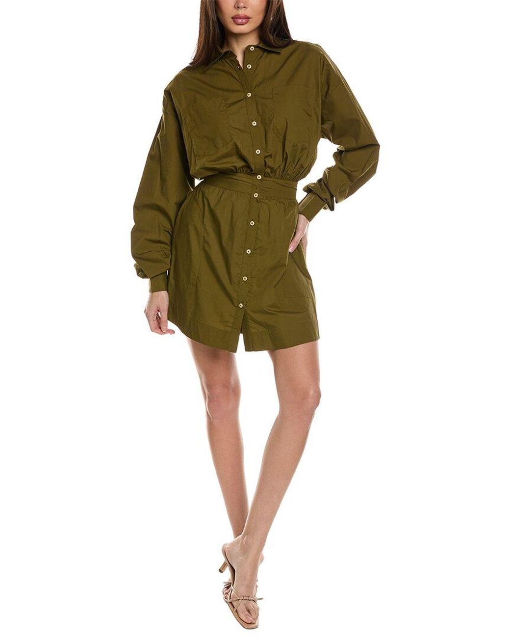 Color/pattern: mulitary Approximately 34in from shoulder to hem Model is 5'10 and is wearing a size 2. Measurements may vary slightly by size. Design details: spread collar, dual chest pockets, dropped-shoulder sleeves, button cuffs, and dual side on-seam pockets Button front 100% cotton Machine wash Imported