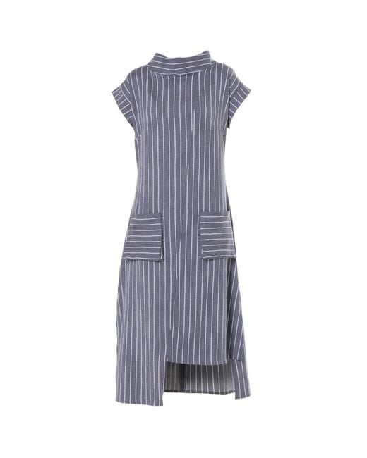 Women's Blue Midi Striped Denim Dress