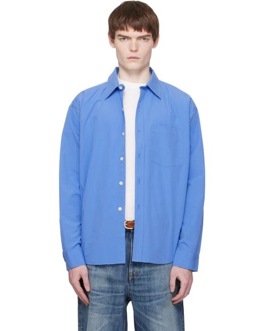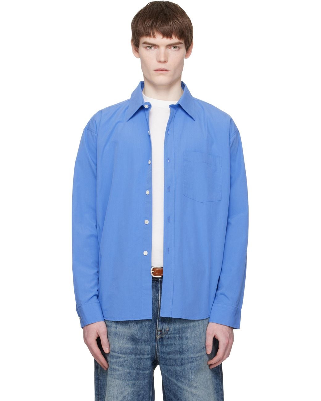 Garment-washed organic cotton poplin shirt. · Spread collar · Button closure · Patch pocket at chest · Shirttail hem · Dropped shoulders · Barrel cuffs · Box pleat at back yoke Supplier color: Desktop Blue Colour: blue