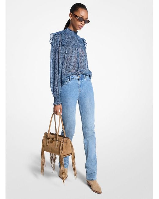 - Metallic Paisley Print Smocked Georgette Blouse