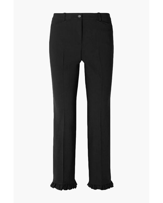 Women's Black Ruffle-trimmed Wool-blend Crepe Straight-leg Trousers