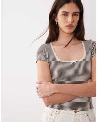 Tops by Miss Selfridge Plain design Square neck Short sleeves Slim fit. Polyamide/Elastane. Colour: green