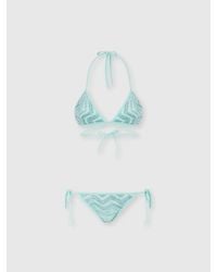 Go to MissoniRetro lines and modern details come together in this bikini with high-waisted bottoms and underwire top, featuring a neck tie. Made from printed technical fabric, it celebrates Missoni’s iconic zigzag motif with timeless elegance. Colour: white