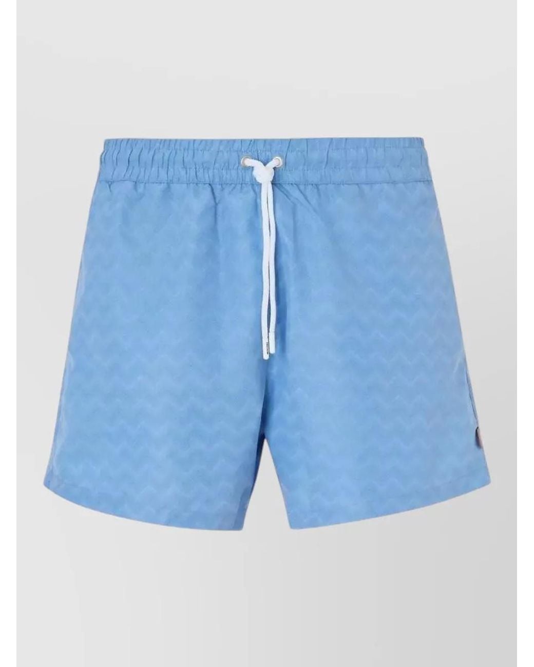 Men's Blue Medium Length Zigzag Swim Shorts Pockets