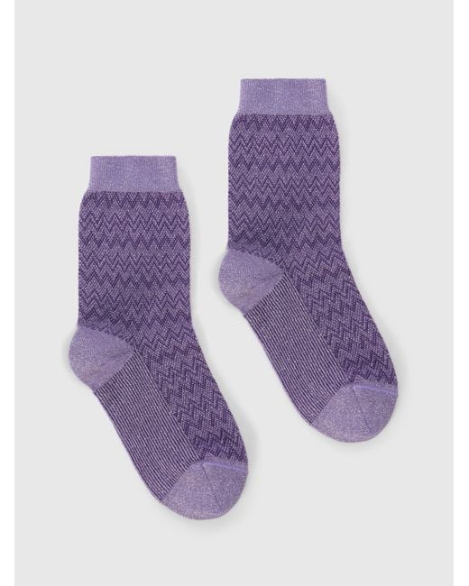 Women's Purple Short Lamé Knit Socks With Zigzag Pattern
