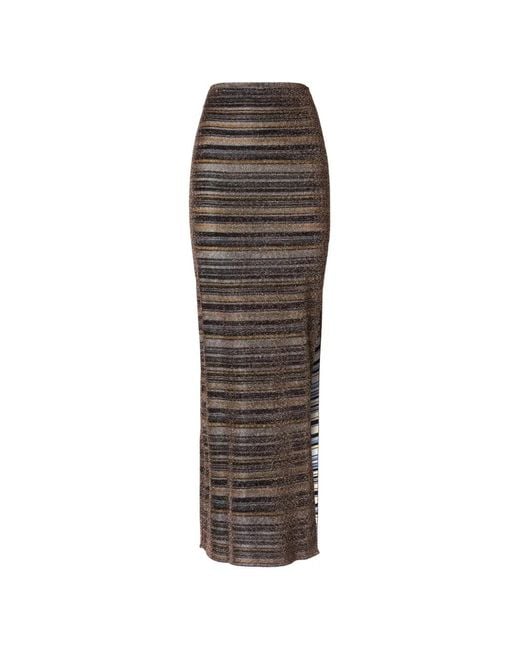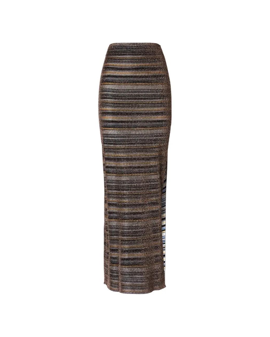 Brown striped side slit floor length high-waisted The item you receive may differ slightly from the item photographed. This is due to the artisanal nature with which all Missoni products are constructed. Size: 36. Gender: Female. Material:Rayon/Metallised Fibres/Polyamide.