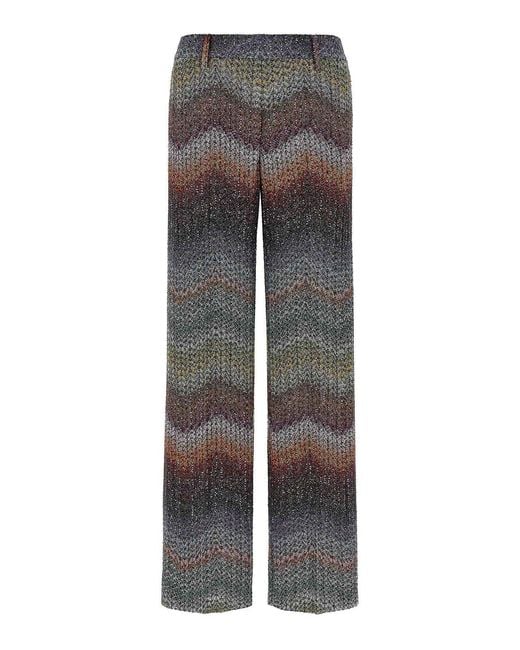 Wide Leg Trousers With Zigzag Pattern - Multicolour