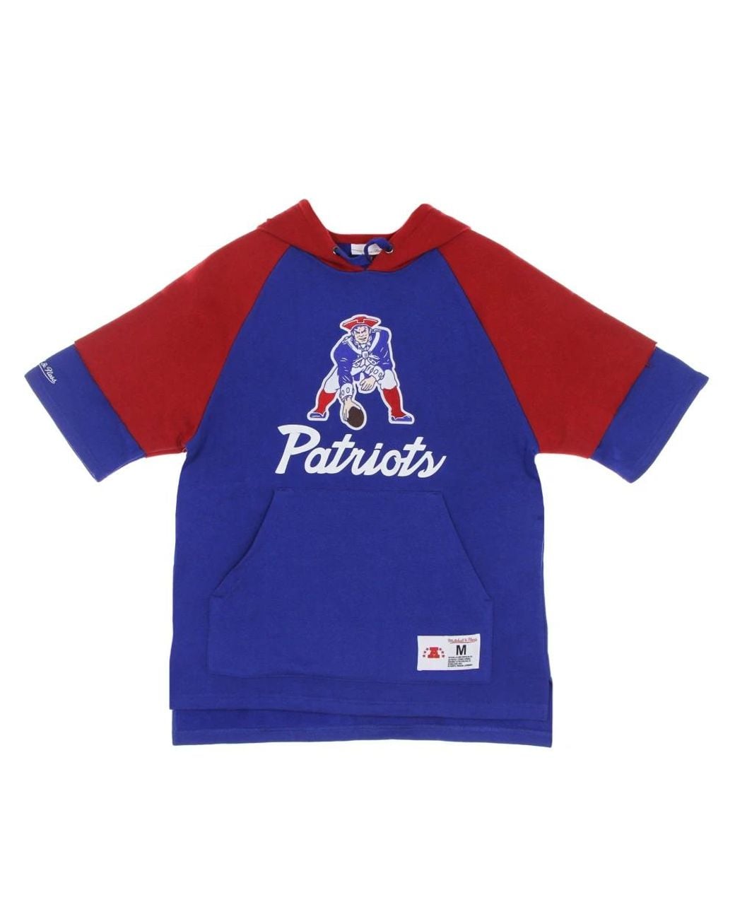 Show your support for the New England Patriots with this short sleeve hoodie from Mitchell & Ness. Featuring the team's logo on the front, this regular fit hoodie is perfect for male fans. Made with a comfortable cotton-polyester blend, it includes an adjustable drawstring hood, front kangaroo pocket, and side vents. Officially licensed by the American Football Conference. Colour: blue