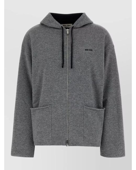 Women's Grey Cashmere Hooded Sweatshirt Front Pockets