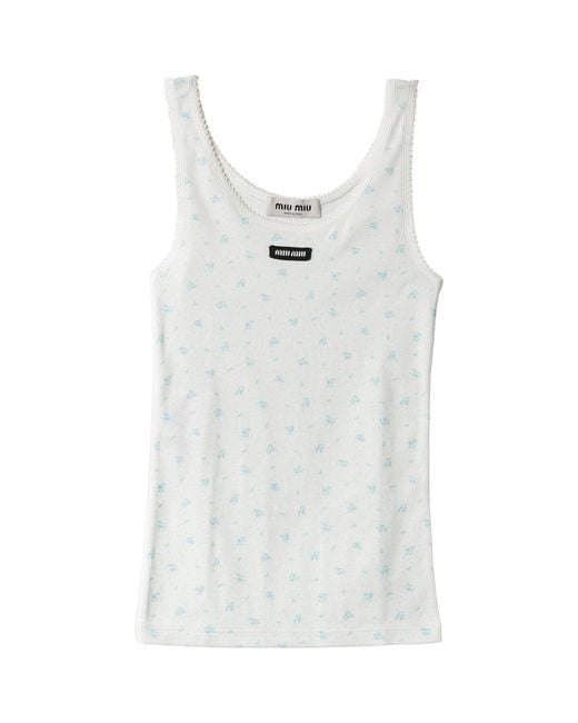 Though at first understated, this jersey tank top from Miu Miu recalls a preppy sensibility and is imagined with blooming florals that delicately adorn its entirety. Enriched by scalloped edges that offer gentle texture and depth, the piece is finished with the label’s signature moniker to mark both its provenance and your brand loyalty. Colour: white