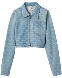Miu Miu Women's Blue Down Jacket With Printed Logo