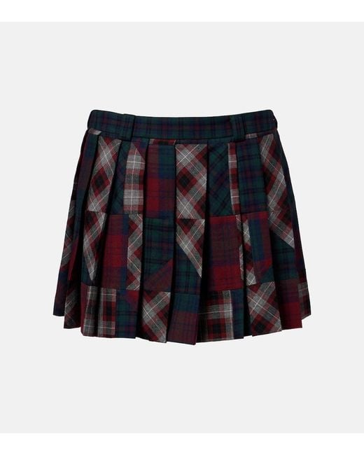Women's Black Patchwork Plaid Virgin Wool Miniskirt