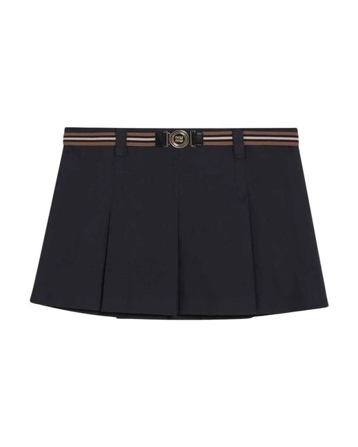 Miu Miu Gonna a Pieghe is a short pleated skirt from Miu Miu that adds structured movement to both daytime and evening outfits. Its pleated silhouette creates a polished, feminine profile ideal for styling with tailored pieces or casual tops. Key attributes: Black | Blue | Pleated silhouette | Mini length Colour: blue