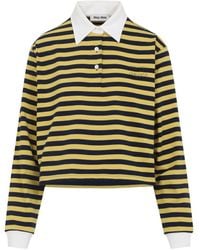 Go to HarrodsThis Miu Miu polo shirt reimagines a classic silhouette with a contemporary twist. Crafted from soft cotton fleece, it features bold blue and white stripes, a half-zip front and a ribbed-knit collar and