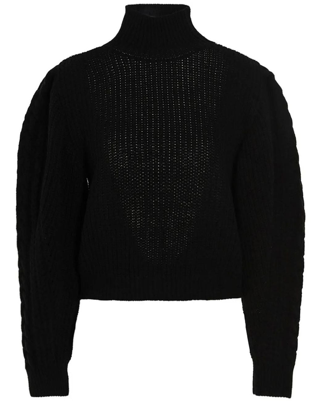 Black high neck long sleeves straight hem Size: XS. Gender: Female. Material:Wool. Colour: black