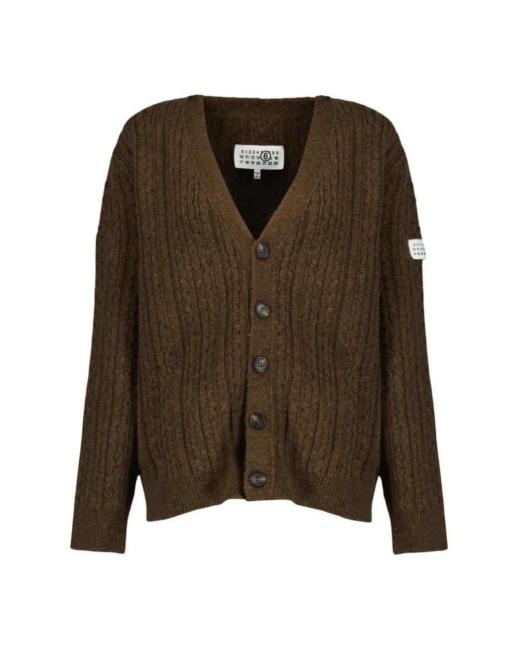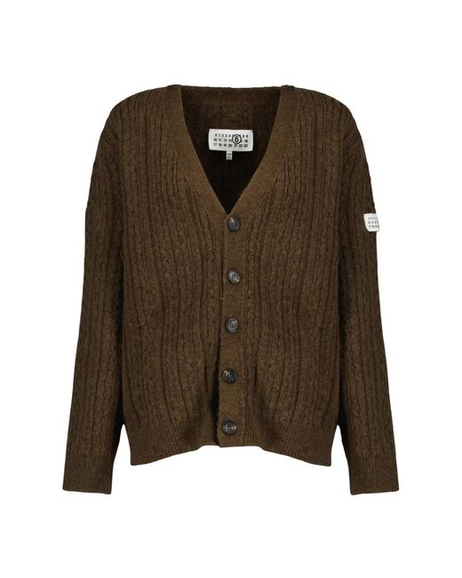 MM6 Maison Margiela Ribbed Wool Cardigan is a rib-knit cardigan crafted in a wool blend, designed for layered wear in cooler seasons. It highlights a textured, ribbed construction for a classic yet tactile look. Key attributes: Brown | Marron | Wool | Ribbed knit | Composition & care: 35% Wool, 35% Acrylic, 28% Polyamide, 2% Elastane Colour: green