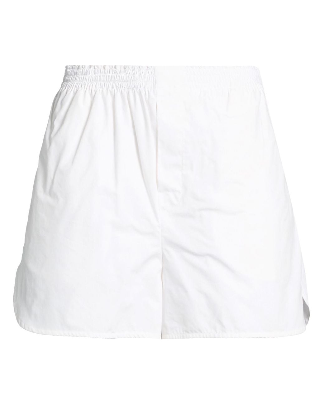 MODES. shorts, poplin, plain colour, no appliqués, high waisted, elasticised waist, regular fit, slit pockets, machine wash or dry clean, do not bleach, do not tumble dry. 100% Cotton. Colour: white