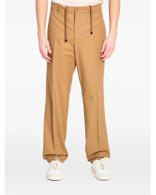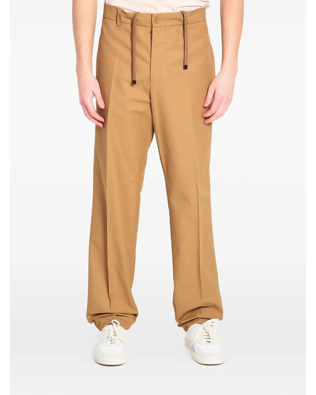 Men's Natural Drawstring Leather Logo Patch Trousers