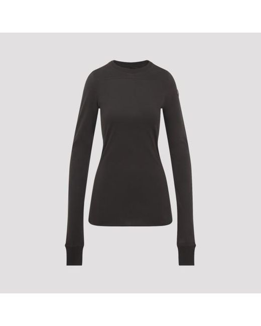 Moncler X Rick Owens Dark Dust Girder LS T-Shirt. Dark Dust mediumweight cotton jersey, long-sleeved and has a crewneck and a slim fit. Girdered panel on the front upper chest and shoulder and has the Moncler + Rick Owens embroidered logo patch on the left upper arm. Colour: black