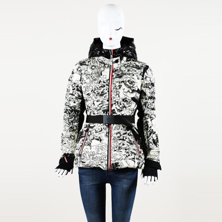 Moncler Women's Black Grenoble Floral Down Filled "bruche" Hooded Coat