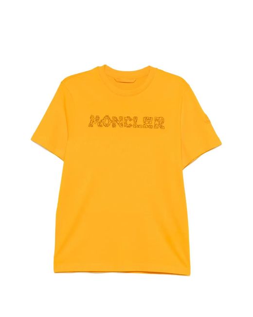 Moncler Embroidered Logo Cotton Piquet V-Neck T-Shirt - Orange