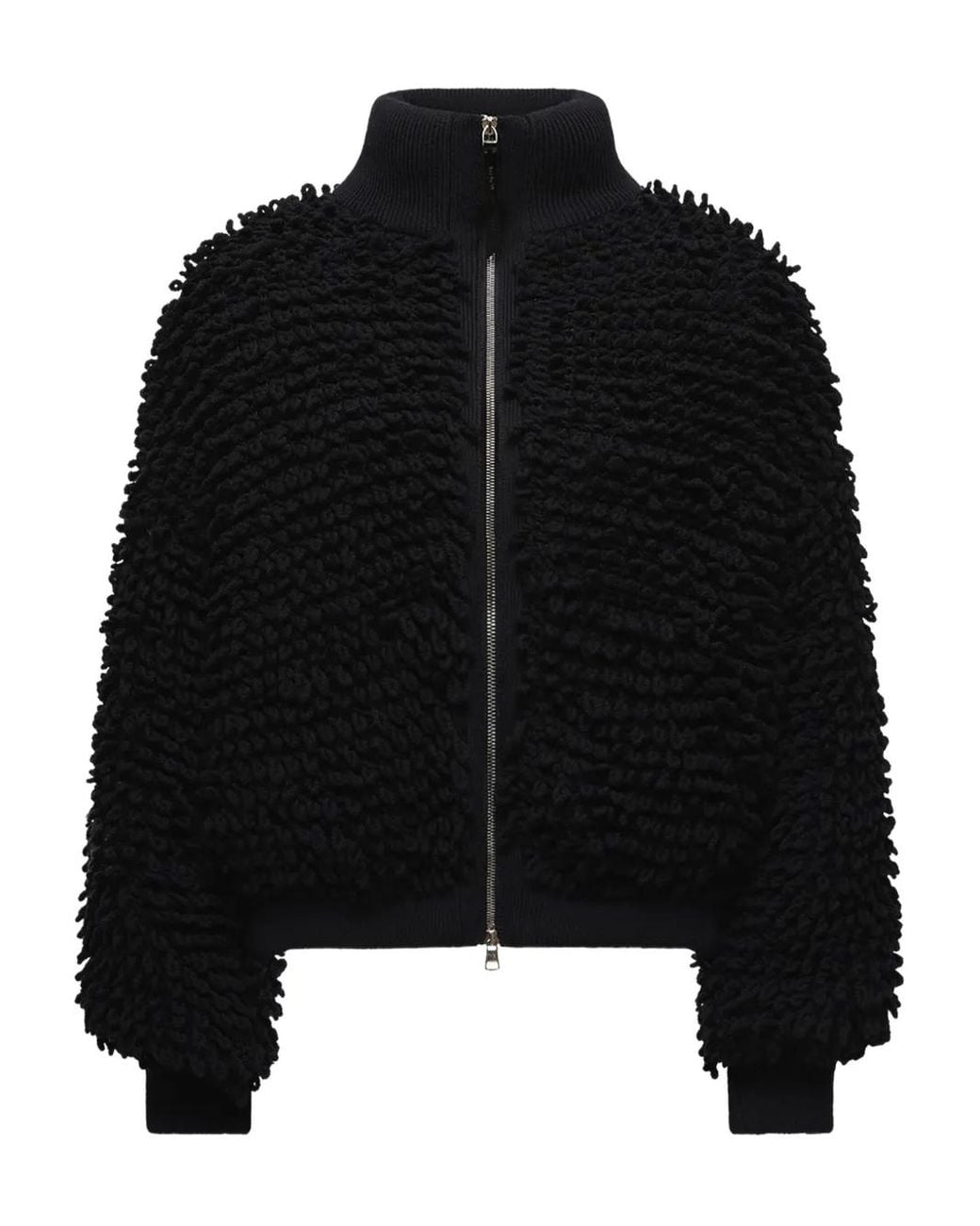 Black textured finish high neck zip fastening long sleeves ribbed hem Size: XS. Gender: Female. Material:Nylon/Acrylic/Virgin Wool/Down.