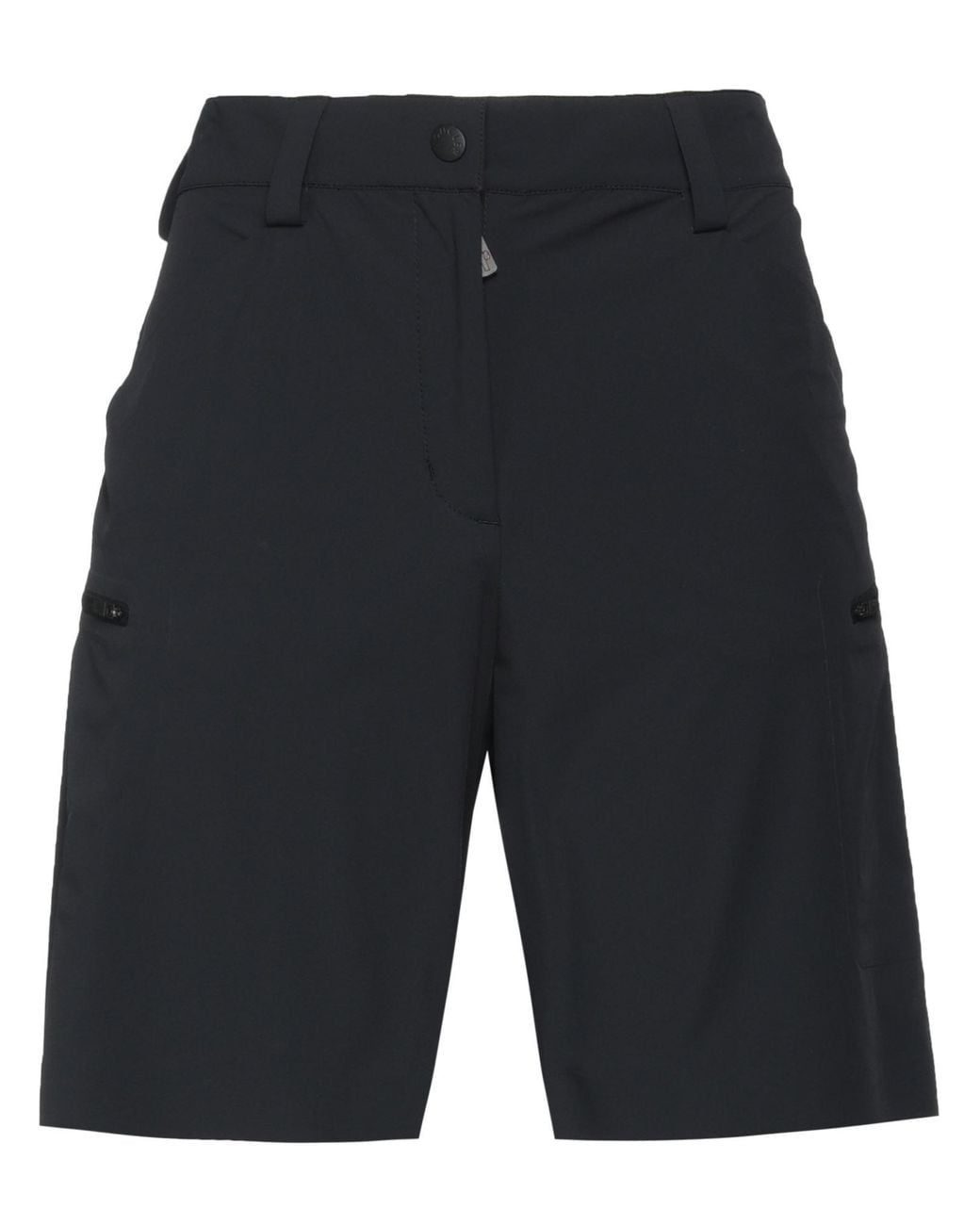 MONCLER GRENOBLE. shorts, shell, plain colour, brand logo, high waisted, elasticised waist, zip fastening, 1 button, multipockets, zipped pockets, stretch, machine wash or dry clean, do not bleach, do not tumble dry. 84% Polyamide, 16% Elastane.