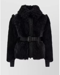 Moncler Women's Black Textured Cropped Down Jacket With High Collar