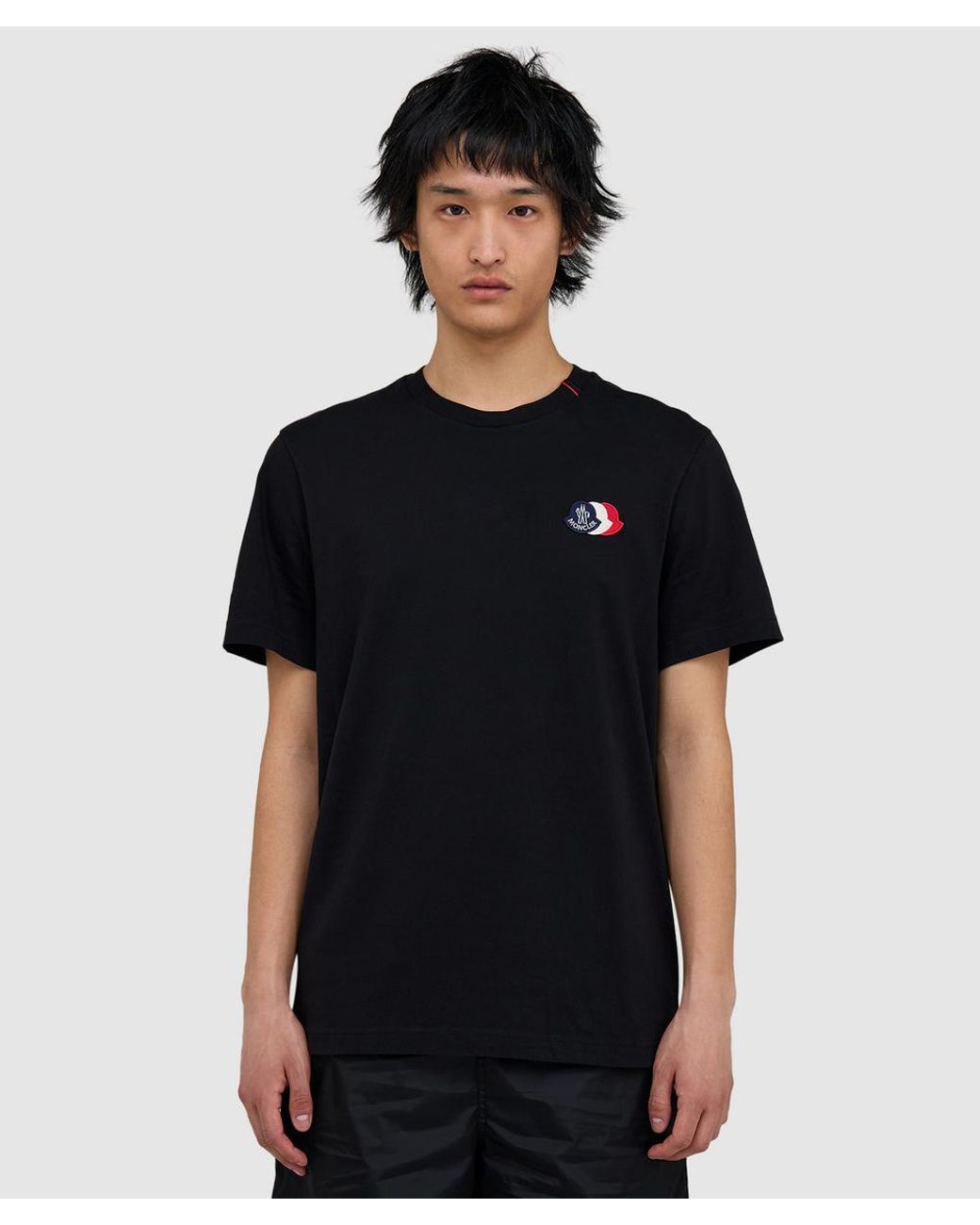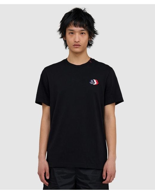 A refined everyday essential, this Moncler T shirt interprets the labels signature tricolour identity through precise embroidered patches, applied to a premium cotton jersey base for everyday styling. Regular fit Ribbed crewneck Embroidered tricolour logo patches 100% pima jersey cotton Item code: L1091 8C00074 - 89B8Q 999 Colour: black