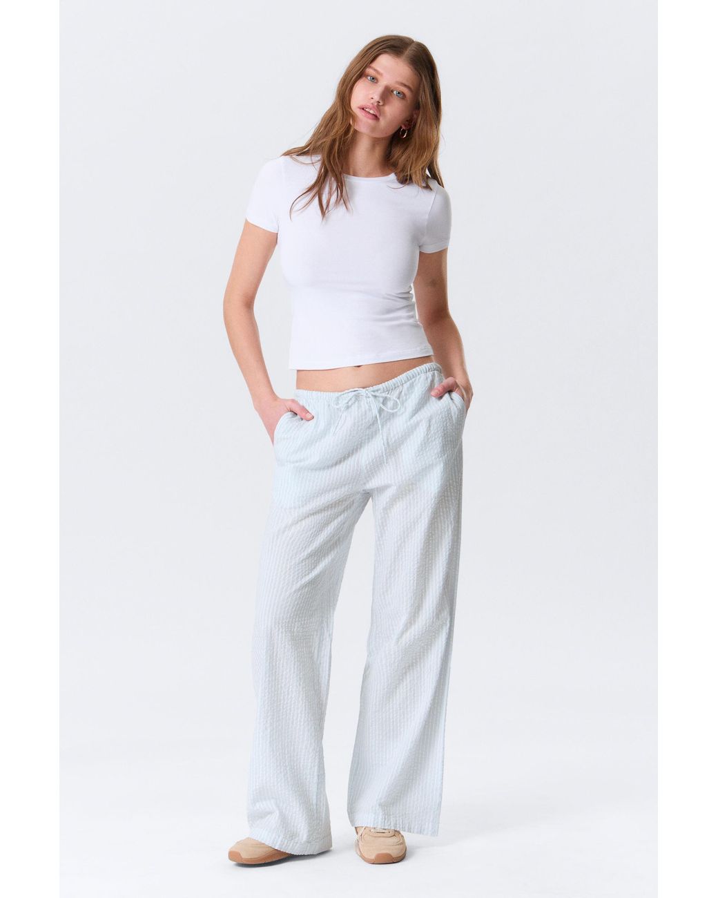 Women's White Low-Rise Relaxed Pull-On Trousers