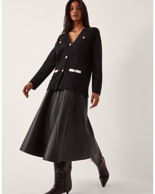 Make every layer count. Designed with gold-tone textured buttons and soft white details, this cardigan is perfect for slipping on top of blouses and t-shirts. Cosy and cute, it'll be your go-to for in-office days and weekend brunch. Black. Colour: black