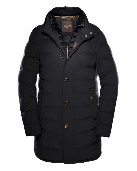 Black padded design quilted finish high neck front button fastening long sleeves two diagonal pockets to the sides central rear vent layered design Size: 60. Gender: Male. Material:Polyamide/Polyamide/Polyester/Polyurethane/Virgin Wool. Colour: blue
