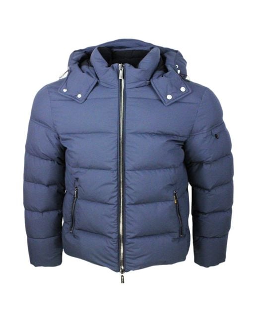 Men's Blue Goose Down Padded Bomber Jacket With Removable Hood