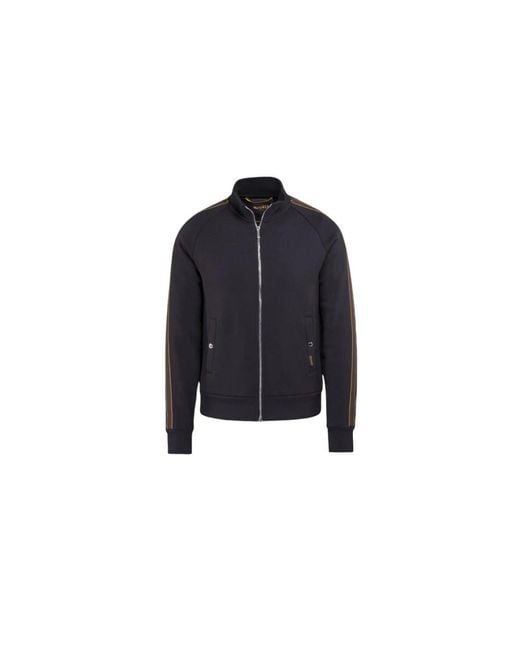 Zip-up sweatshirt, made of garment-dyed brushed cotton fleece, combed and stretchy. An ideal material for versatile joggers, perfect for leisure wear. Combed stretch cotton fleece Front closure with double-slider zipper Raglan sleeves Sleeves and shoulders finished with iconic Moo RER tape in brown and gold Side welt pockets closed with snap buttons Ribbed cuffs and hem Made in Italy The model is 186 cm | 6'1'' and is wearing a Moo RER size IT 48. The model measures: Bust 100 cm | 3'3'' Waist 82 cm | 2'8'' Hips 96 cm | 3'2'' Colour: blue