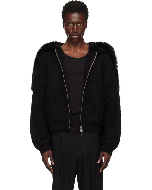 Brushed knit stretch nylon- and mohair-blend hoodie. · Relaxed-fit · Zip vent and Toscana shearling trim at hood · Two-way zip closure · Patch pockets · Logo embroidered at front · Rib-knit hem and cuffs · Faux-fur lining at hood Part of the Moose Lab collection. Supplier color: Black Colour: black