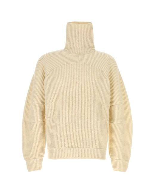 Jumper realized in pure virgin woo. Turtleneck. Ribbed cuffs and hemline. Colour: natural