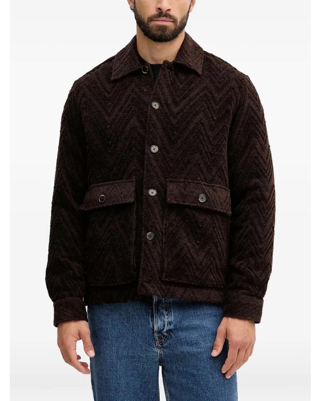Men's Black Mmgluis Clair Jacquard Flap-Pocket Jacket
