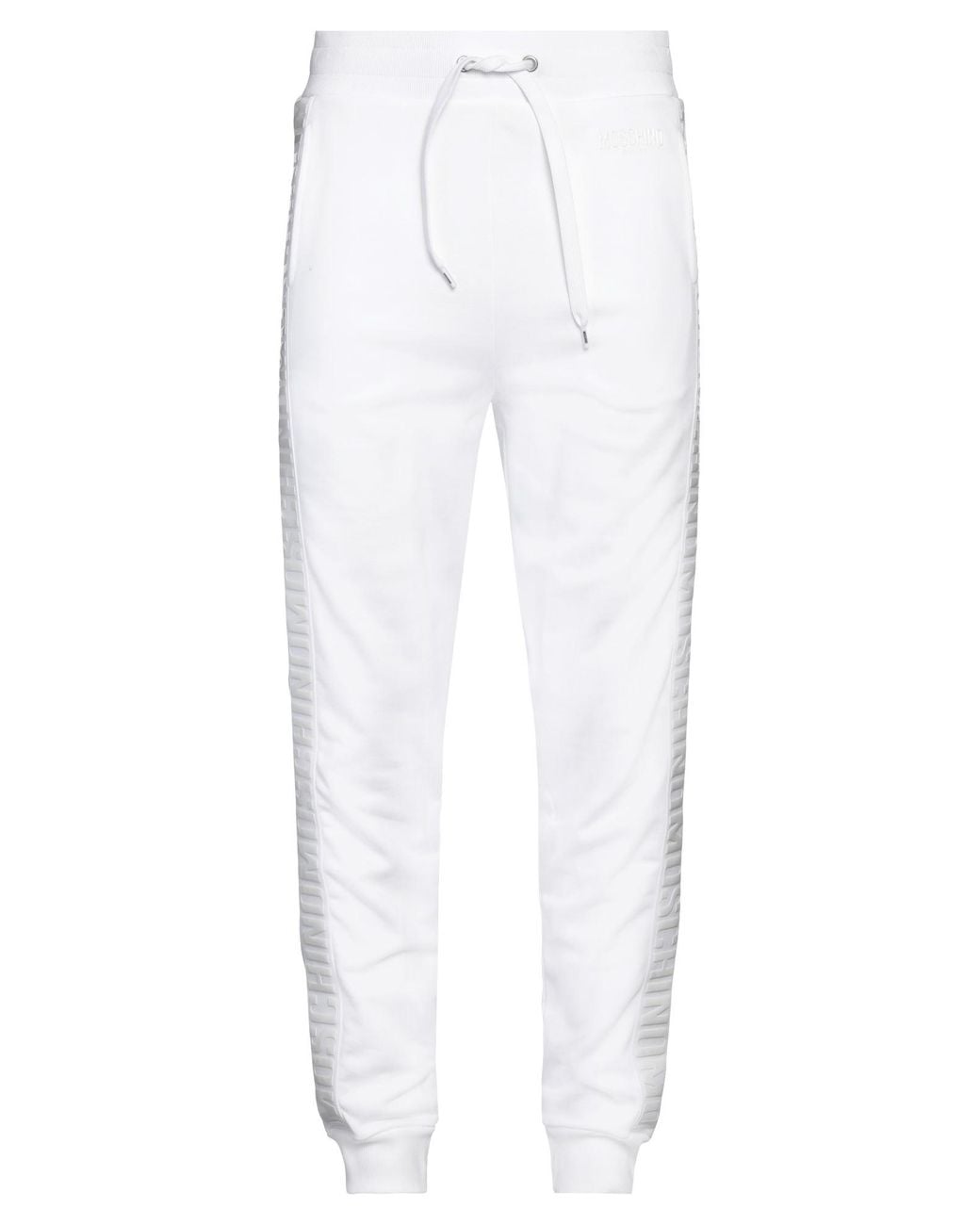 MOSCHINO. track pants, french terry, plain colour with appliqués, brand logo, side seam stripes, high waisted, relaxed fit, drawstring fastening, pockets, machine wash, do not bleach, do not tumble dry. 100% Cotton, Elastane.